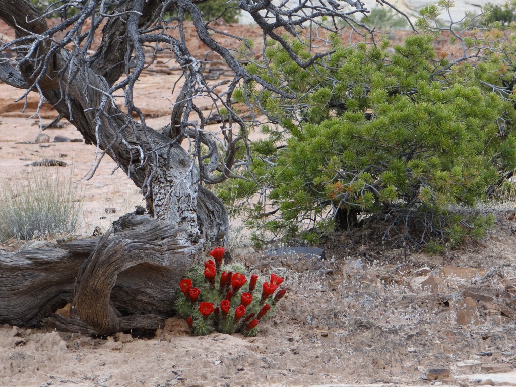 But there is more to sapience and creativity than works of art. The photo below is taken near Natural Bridges National Monument. We can see a few species of plants and lots of sand. But it only implies the drama between coyotes and rabbits, rattlesnakes and ground squirrels, and hundreds of species of bacteria, insects, and small plants we cannot see. Further, it only implies overarching systems such as the weather and consistent energy from the sun.