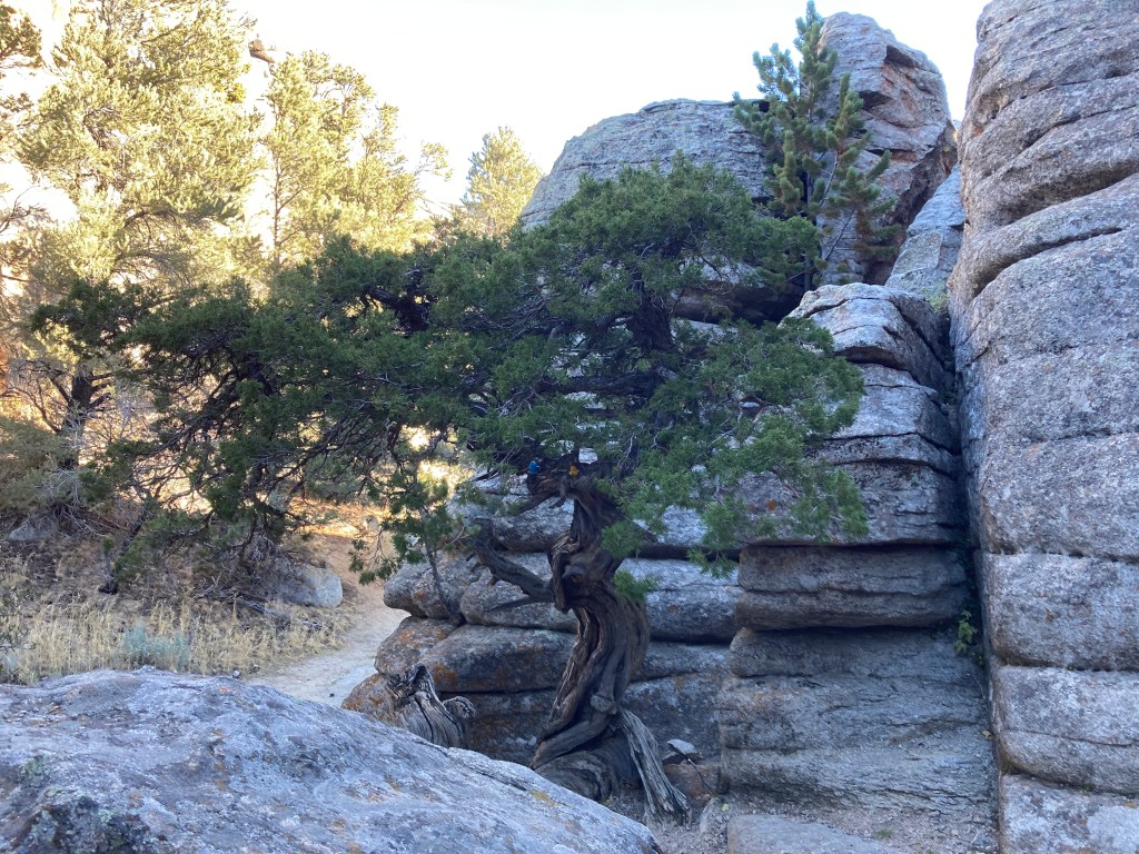 We met a natural bonsai on one of our hikes during our Fall 2022 pilgrimage. We’ve never met one that looks so much like what bonsai enthusiasts strive to emulate. It turns out this natural bonsai is a master of sentience without sapience – not a master of bonsai, but thee Bonsai Spirit.