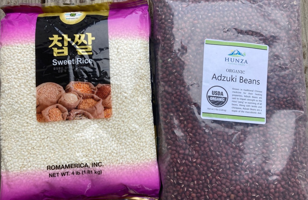 (or 1 cups mochigome + 1 cup regular Japanese short-grain rice) - ½ cup azuki beans (small red beans)